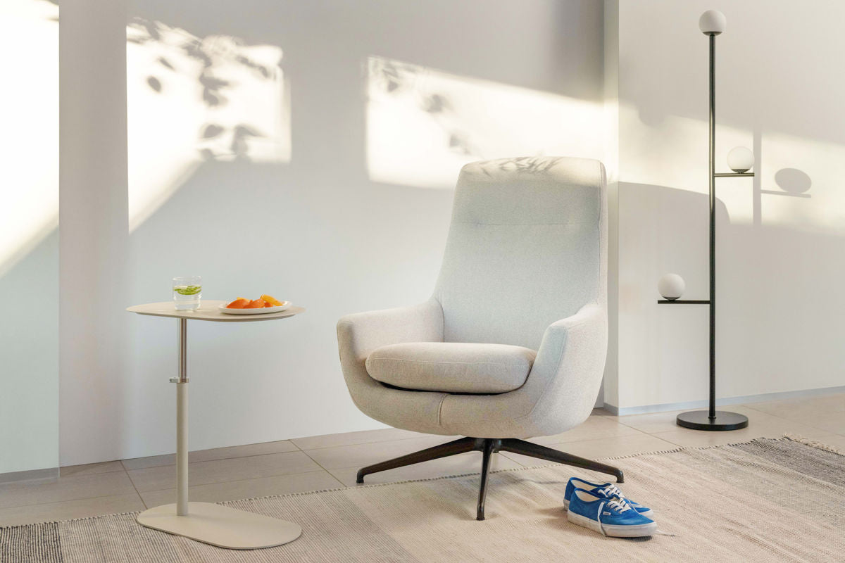 Suite is a remastered Scandinavian chair originally designed in the 60s. It presents itself lightly with sinuous curves, spinning like a dancer as a part of a greater ensemble of objects in a living room or alternate setting.
