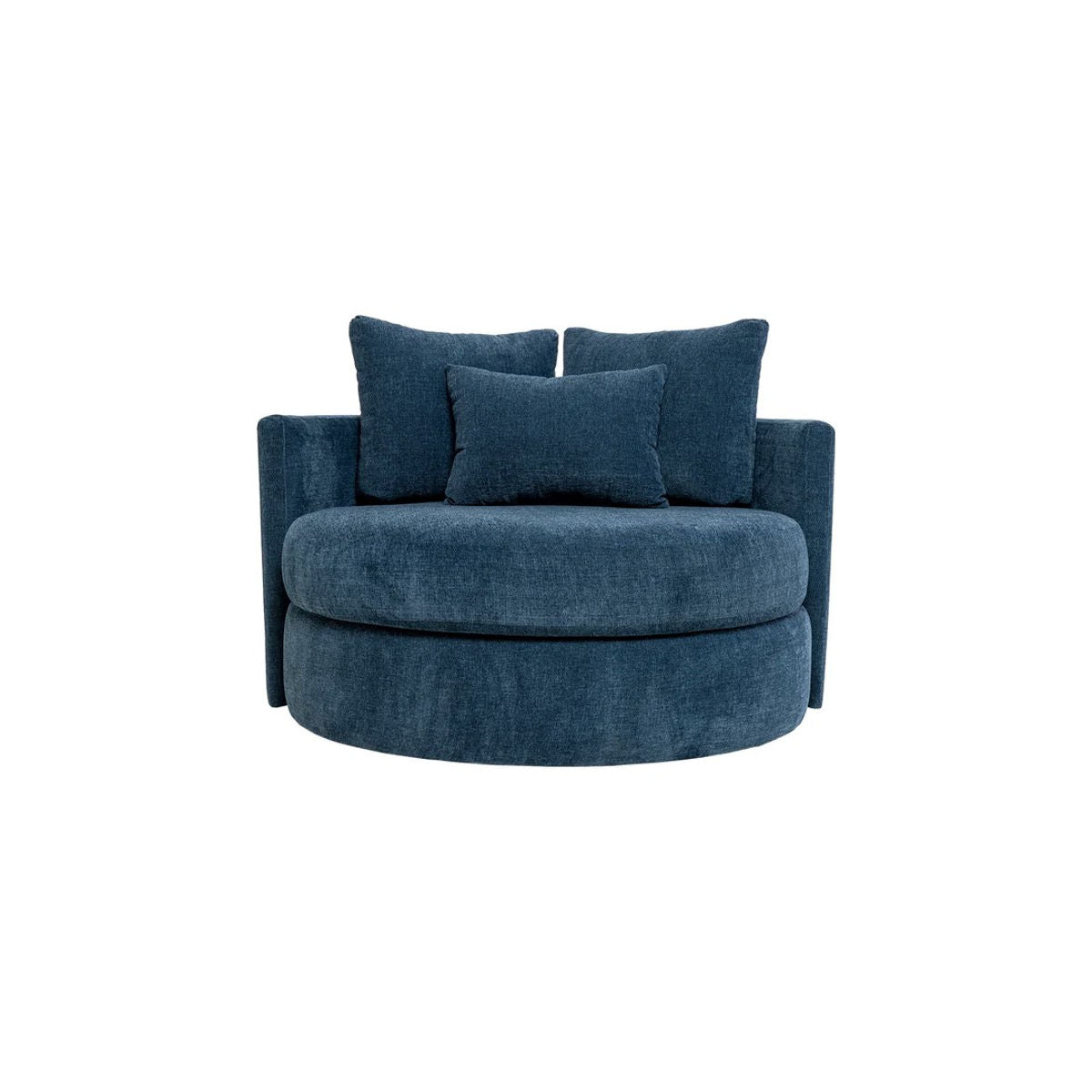Olive may be small in scale, but it packs a powerful punch in design. We made Olive with two symmetrical semi-circular upholstered panels that meet at the back, leaving a subtle space in between. The Olive boasts a generous 7” thick crowned foam and fibre seat cushion and an extra supportive kidney pillow for the small, while the larger size comes with two rectangular toss and a kidney pillow. Take Olive for a spin today…it is after all, a swivel chair!