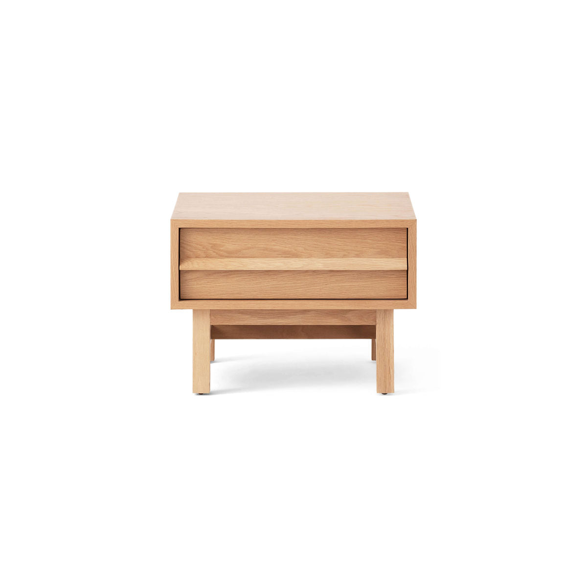 The timeless design and natural detailing of the wood Marcel nightstand give it a mid-century modern appeal. The trestle base, oak or walnut handles, and side-mounted full-extension drawer slides make this nightstand a must-have for any bedroom.