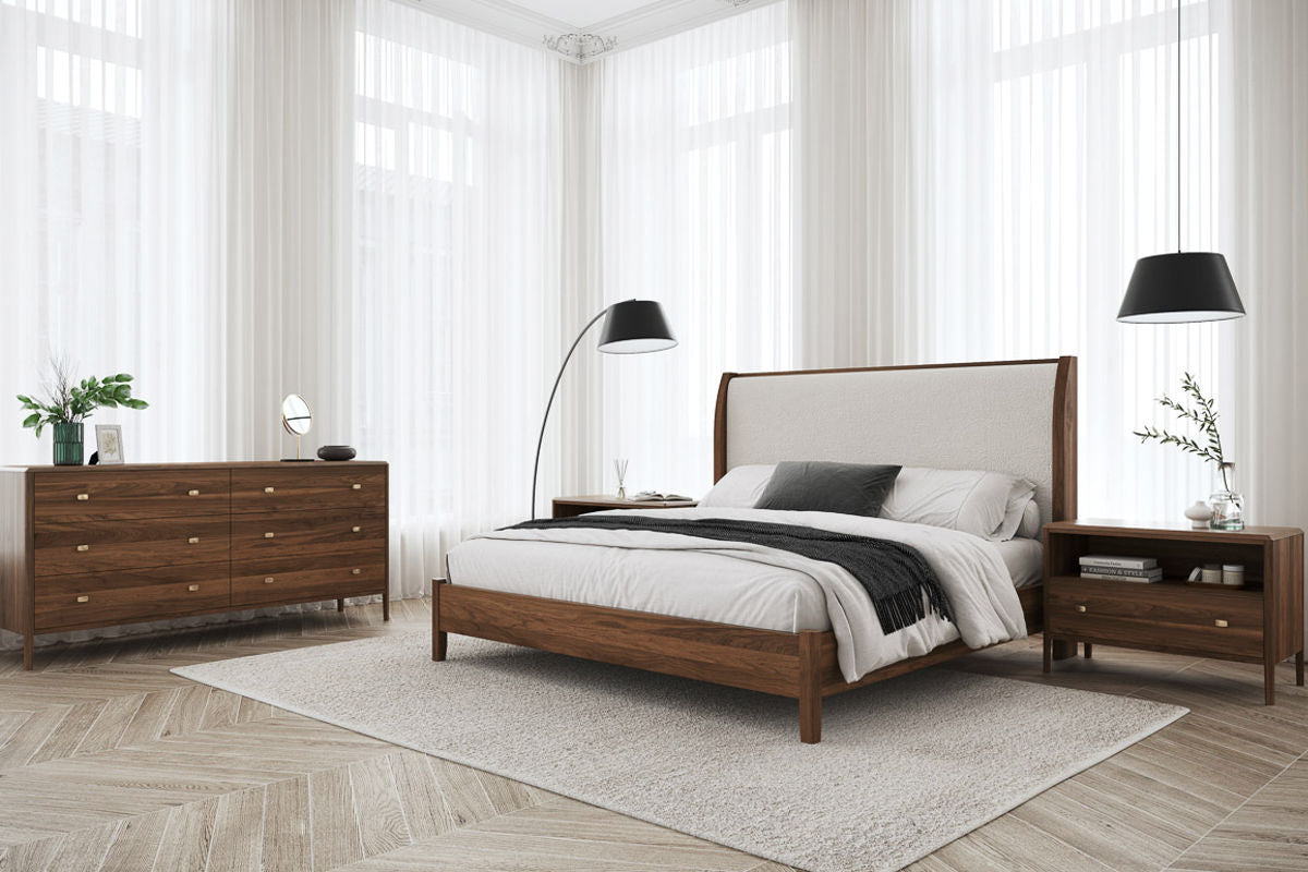The Julia Bed by Mobican is a stunning blend of timeless design and modern craftsmanship, perfect for creating a serene and sophisticated bedroom retreat. Featuring a graceful silhouette with a gently curved headboard and clean, angular lines, the Julia Bed exudes understated elegance. Crafted in Canada with premium materials, this bed is built to last and offers a selection of high-quality finishes, allowing you to personalize it to suit your unique style.