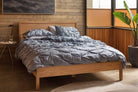 The modern Marcel Bed is a timeless design that highlights the natural warmth and detailing of wood with a mid-century modern appeal. Its height allows for storage underneath, making it perfect for any bedroom.