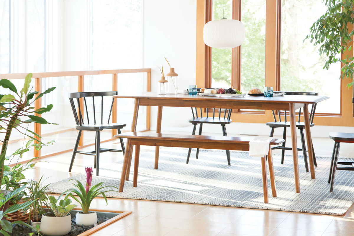 Tasteful and modest. constructed of solid acacia wood, the Kacia collection takes inspiration from this material. native to Vietnam, acacia is a durable, soft wood with a rich and complex grain. Thin lines, rounded edges and mid-century inspired styling highlight the solid wood, finished in a warm chestnut brown. Available in three sizes that can accommodate four - eight guests, the Kacia dining table is a casual dining table that is easy to maintain. Pair the Kacia dining table with the corresponding Kacia bench.