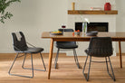 Featuring a powder-coated metal frame and leather upholstered seat and back, the Minimal chair gets its name from its clean lines and modern look.