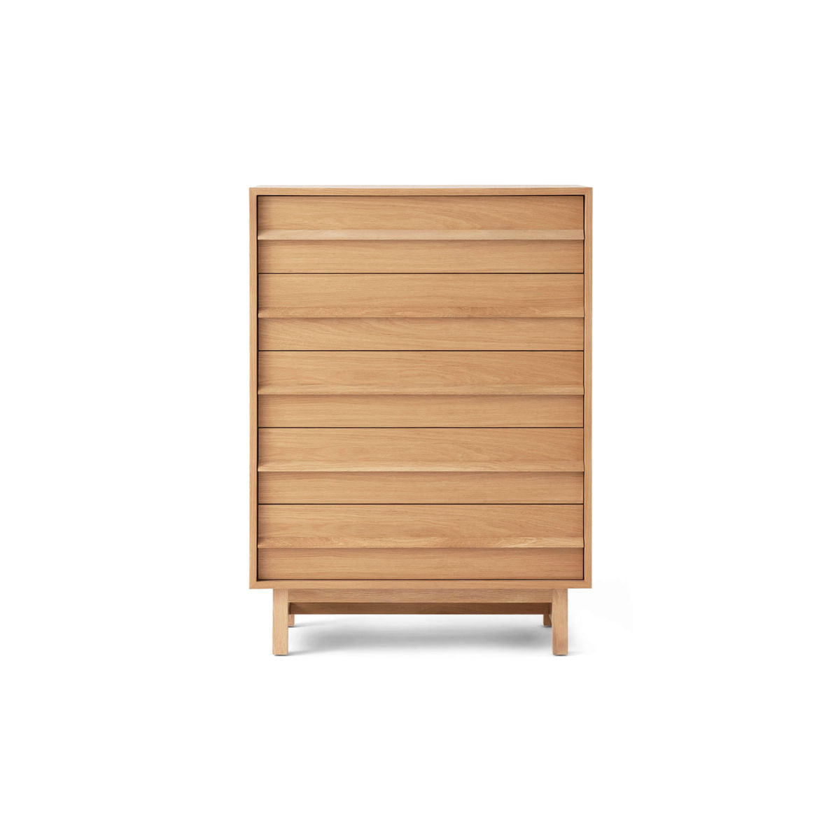 The Marcel Chest is a modern chest of drawers that features a trestle base, solid oak or walnut handles, and under-mounted full-extension drawer slides. This chest is designed by Winnipeg-based Matthew Kroeker, and highlights the warmth and natural detailing of wood with a mid-century modern appeal.