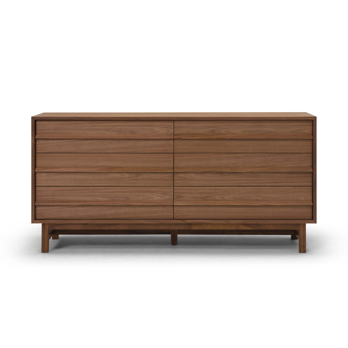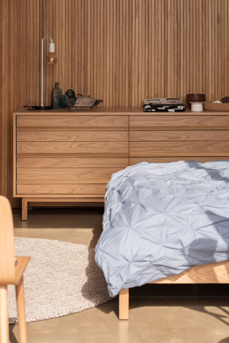 The Marcel Chest is a modern chest of drawers that features a trestle base, solid oak or walnut handles, and under-mounted full-extension drawer slides. This chest is designed by Winnipeg-based Matthew Kroeker, and highlights the warmth and natural detailing of wood with a mid-century modern appeal.