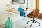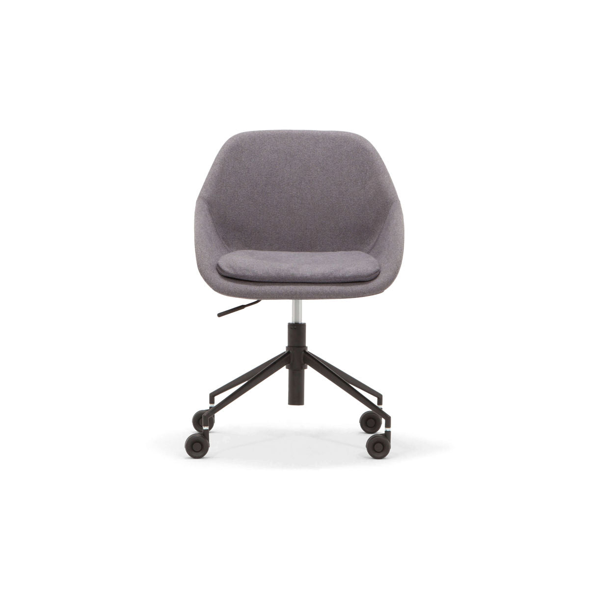 The Nixon chair is upholstered with a soft fabric or man-made leather, has a swivel base that can turn in every direction on castors, and its curved design provides support to the body while seated. The padded shell also comes with a removable seat cushion. This classic chair is available in different shades of neutral colors and has a black metal base--making it ideal for the dining room or office space.