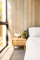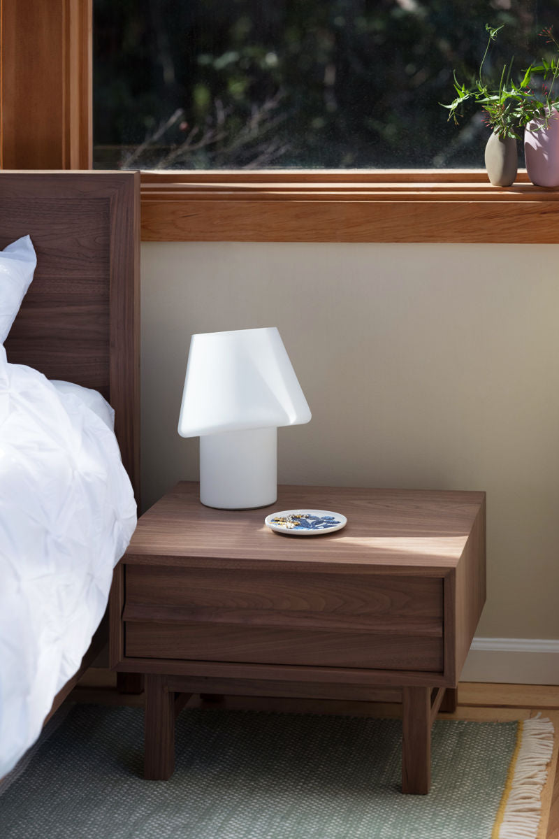 The timeless design and natural detailing of the wood Marcel nightstand give it a mid-century modern appeal. The trestle base, oak or walnut handles, and side-mounted full-extension drawer slides make this nightstand a must-have for any bedroom.