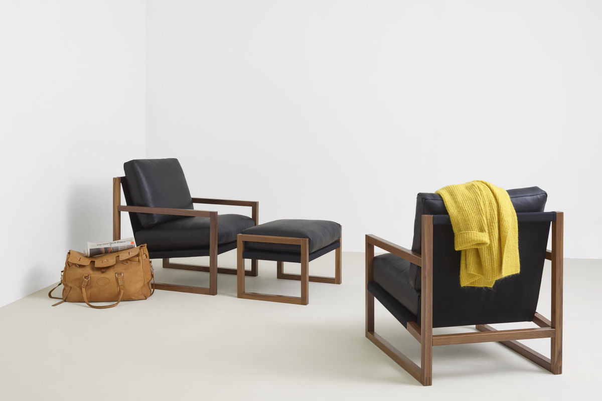 Developed in collaboration with MYKILOS, the Chiara ottoman is simple in design, but highly functional and customizable. The solid frame is available in black, natural ash and walnut. The Cotton Duck Canvas back is available in five colour options including Black, Pine, Natural, Briquette and Midnight. The feather-filled cushion can be customized from a wide selection of fabric and leather options.