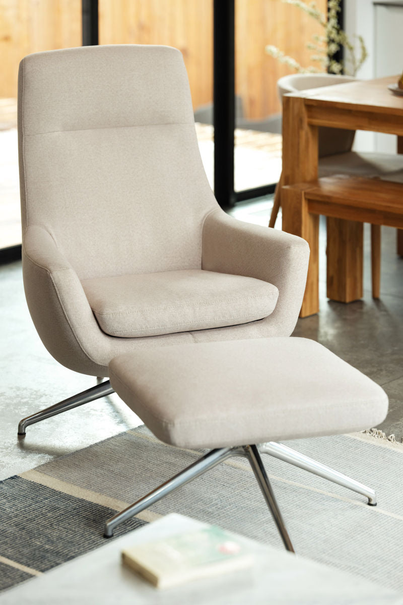 Suite is a remastered Scandinavian chair originally designed in the 60s. It presents itself lightly with sinuous curves, spinning like a dancer as a part of a greater ensemble of objects in a living room or alternate setting.