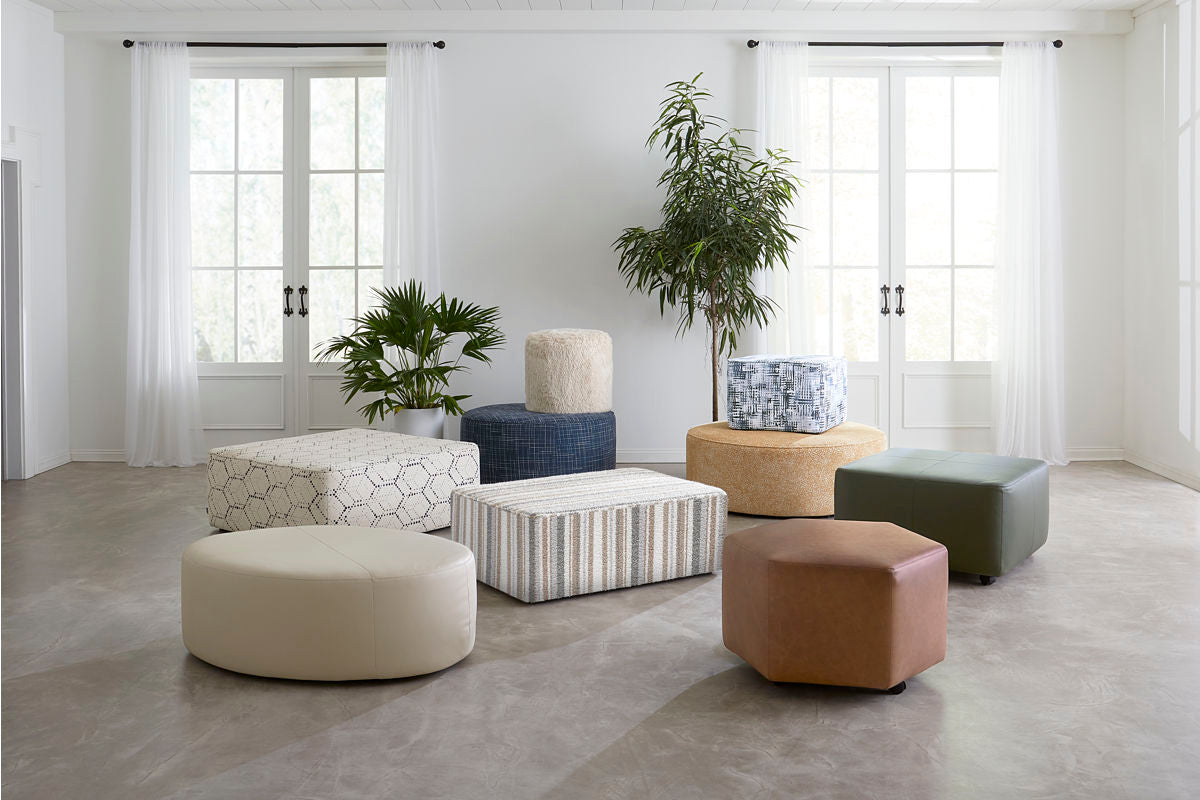 Elevate your setting with the Mingle ottoman. Experience the fusion of style and versatility as it effortlessly transitions from additional seating to a stylish surface. Our ottomans epitomize flexibility, allowing you to explore various styles while serving multiple purposes. Redefine your space with elevated functionality and sophistication.