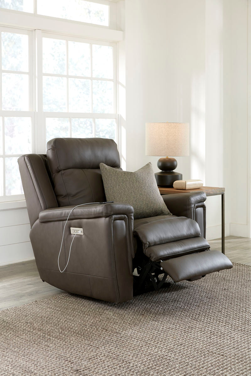 Asher is a sofa built for the modern family: sturdy, endlessly comfortable, and full of convenient function. Plush cushions and pillow-top arms invite you to sink into your seat. Relaxation is enhanced by a power-adjustable headrest and recline, with optional power lumbar support.