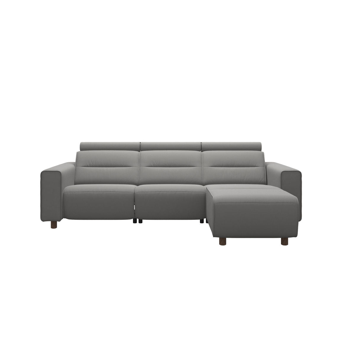Stressless Emily brings you sleek lines with a modern look. The contemporary design and soft, enveloping cushions are an invitation to sit down and relax. All seat modules come with an adjustable headrest and either a fixed seat-back or motorized adjustable leg support. Choose between slim or wide armrests, with steel or wood details.