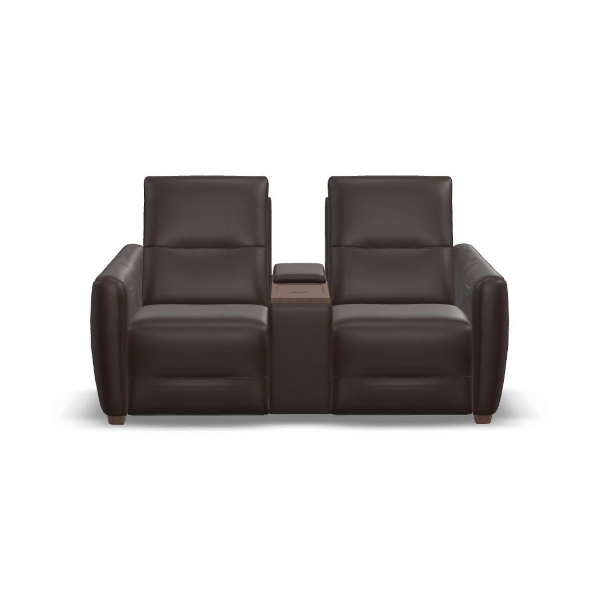 Sanibel Power Reclining Console Loveseat with Power Headrests & Lumbar - Leather