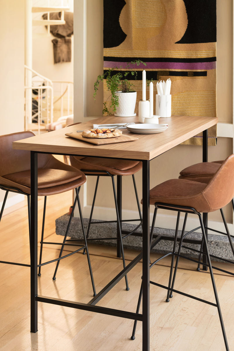 The Nixon Stool is designed with a comfortable and supportive shell that is curved to provide extra comfort. The stool also includes a removable seat cushion in a neutral color palette.