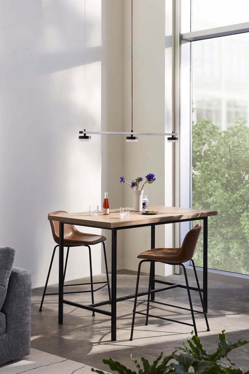 The Oles counter stools feature a padded shell, curved to provide comfort and support. With a neutral colour palette and black-metal base, these stools are suited for the counter or bar and pair well with the Kendall 54” table.