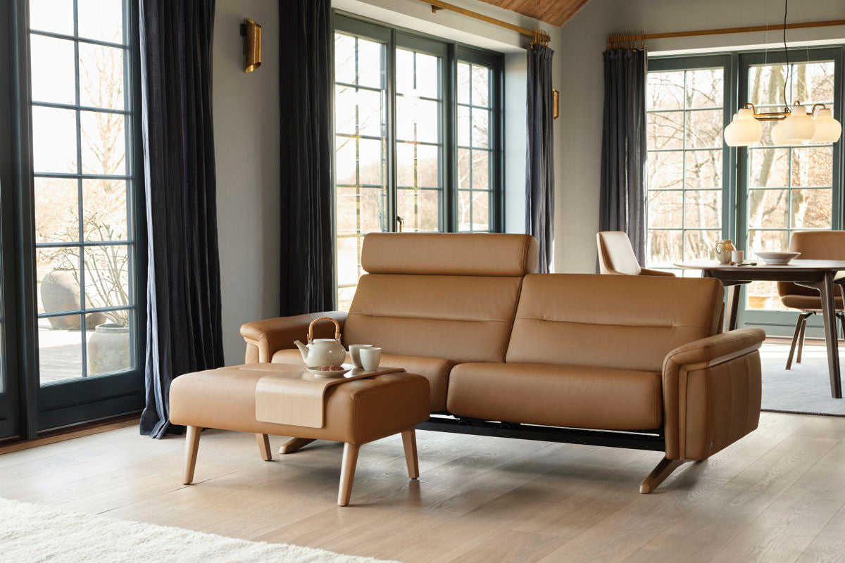Stressless Stella is a soft and contemporary modular sofa that responds to your movements. The Stressless BalanceAdapt™ system allows the sofa to respond to your natural movements by adjusting the seat as you move. Recline, lean forward, lie down or put your feet up and feel how the soft and generous seat adapts to your position. When the occasion calls for just a regular sofa, simply lock the function to stop the seat from moving. Available with different armrests and seat widths, an optional corner and custom headrest and footstool.