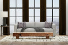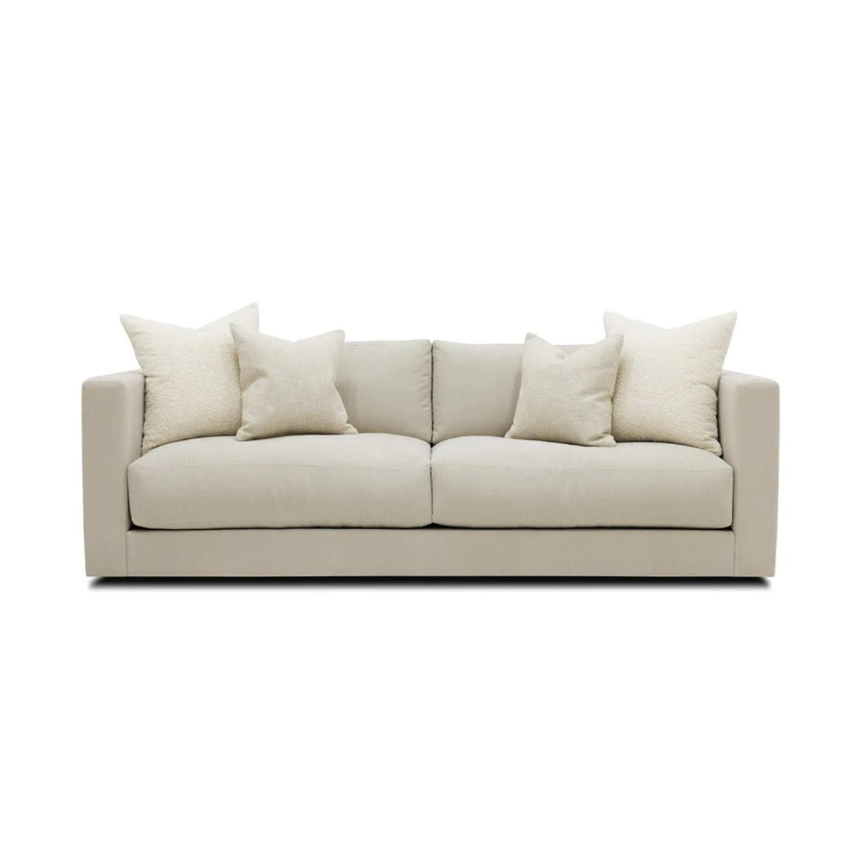 Sink into Ruben’s extra deep feather wrapped soft seating and feather and fibre-filled plush back cushions. all nestled into a sturdily built solid plywood tuxedo style frame. Ruben’s Canadian-made CertiPUR soft foam seats are wrapped in feather and fiber providing you with a 10” seat height for maximum comfort. The back cushions are filled with feather and fibre combination creating a gradual compression that makes you feel like you’re landing into a cloud.
