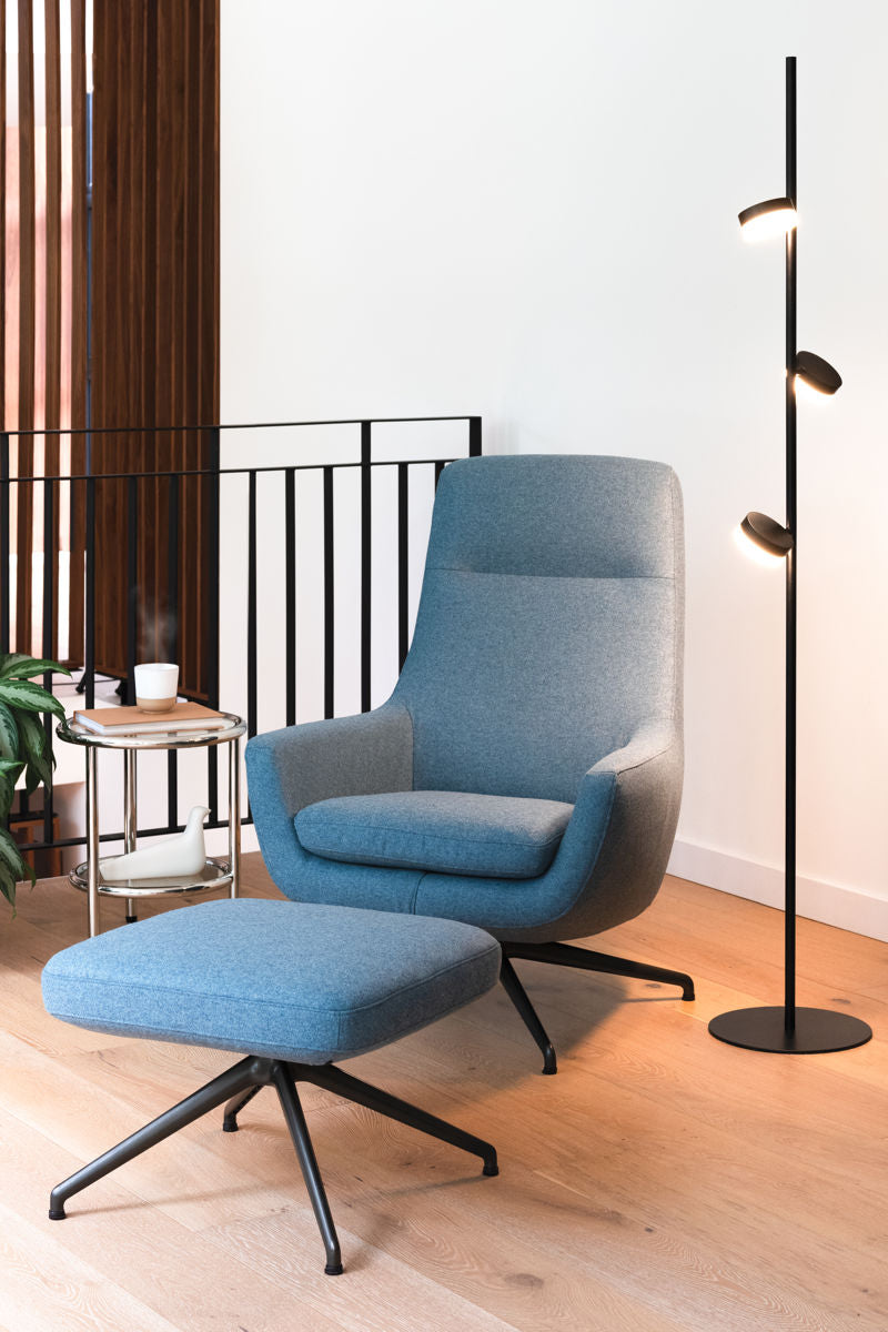 Suite is a remastered Scandinavian chair originally designed in the 60s. It presents itself lightly with sinuous curves, spinning like a dancer as a part of a greater ensemble of objects in a living room or alternate setting.